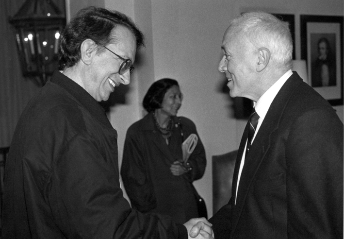 The great scholar Adelchi Amisano was another protagonist of an extensive series of events organised for our members. With the aim of granting a wish expressed by many of them, starting from 1986 a series of ten lessons was held on some of the operas from La Scala’s bill. Yet Amisano’s appearances at Amici della Scala were many, and extremely appreciated was his talent as a music populariser. In the picture he is with Anna Galli (sculptor at La Scala) on the occasion of a public conversation, and with Azio Corghi.